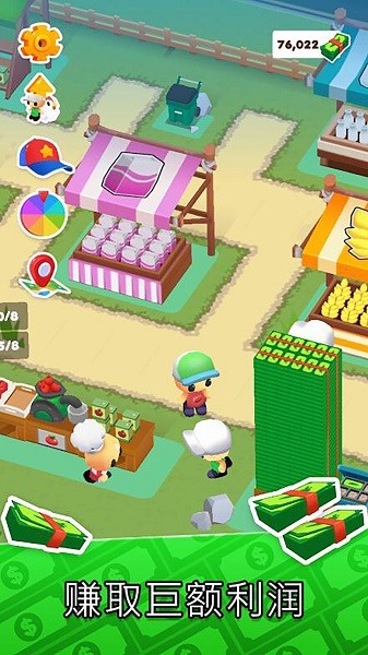 - 收集货物、收取现金、升级迷你市场,一步步打造专属的市场帝国,成为城镇里的大老板。
