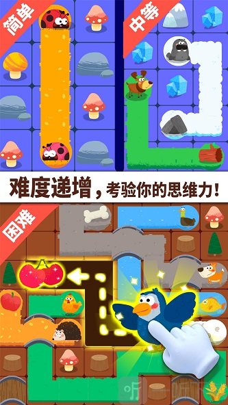 奇妙连线达人是一款超棒的儿童教育类游戏,特别能锻炼孩子的逻辑思维能力。游戏里的小动物们都特别可爱,点击它们还能互动,触发各种有趣的故事。系统会给出提示,引导孩子完成完美操作,助力儿童智力不断提升。