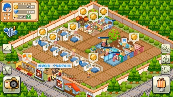 3、玩家看着客人来来往往,为酒店带来了巨大的收益,可以收获非常多的快乐。