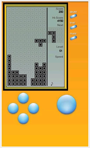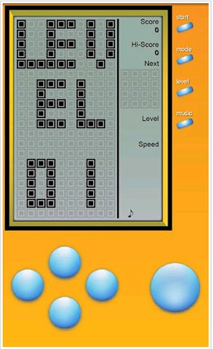 3、俄罗斯方块兼容轨迹球、键盘及触屏三种不同的控制方式。