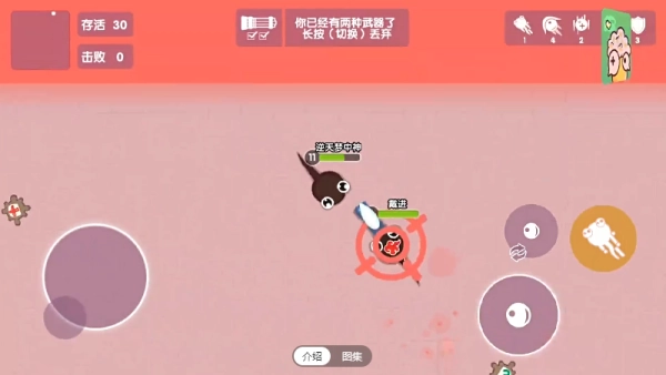 1、当持有两种武器时,若遇到更合适的新武器,可长按切换丢弃旧武器。