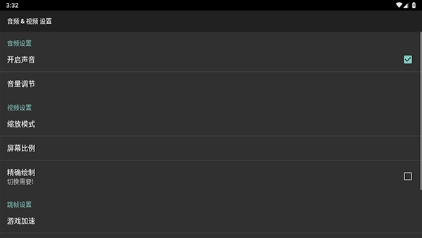 3、音频设置中可调节采样率、开启帧同步、启用加速/减速功能,适配不同性能设备
