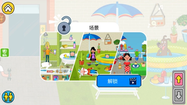 2、自由探索多个主题场景,例如宝宝卧室、后院车库、厨房等,点击选择想要体验的任务,如整理散落的玩具、用工具修理小汽车、清洗衣物