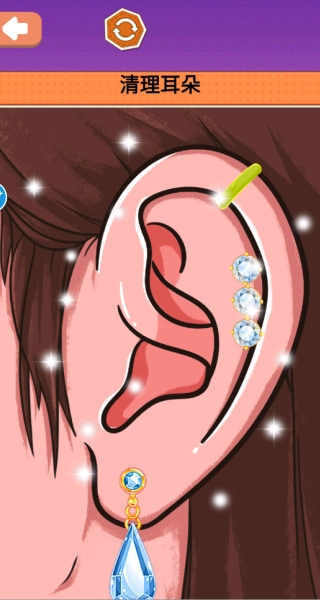 2、选择采耳关卡后需按照"消毒工具→清理外耳廓→处理内耳垢"的标准化流程逐步操作,每个步骤都有动态指引。