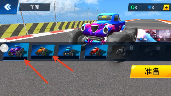 1.进入后,你可以从关卡挑战、分数关、拆迁关卡等多种模式中选择一个,并挑选你喜欢的大脚越野车开始冒险。