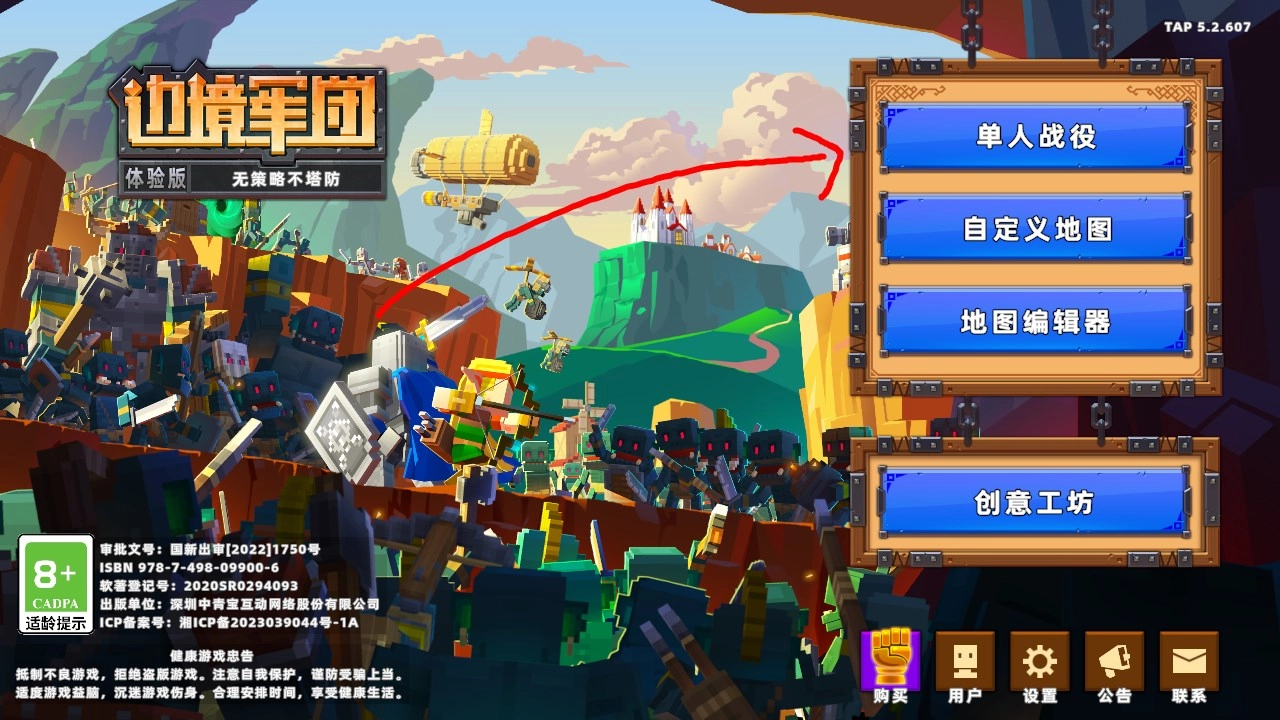 2、进入游戏后新手先从单人战役开始,后续就可以玩玩自定义地图,高手还可以进行编辑,自定义地图可以从创意工坊获取。