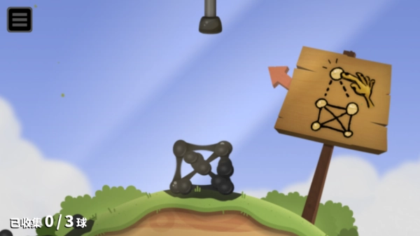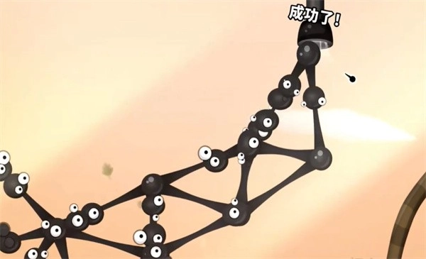 1、玩家需要利用粘粘球搭建一个大桥,记得把距离拉长一点,并且游戏加入了重力设定,粘粘球会直接垂下来。