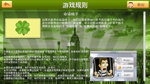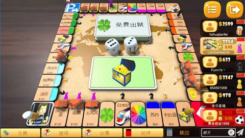 如果玩家在监狱里,他们不能正常的对局,必须支付金币100罚款,或者用“免费出班房”家,或者尝试甩出双数才能被放出来。如果玩家甩不到双数便会失去他的局。