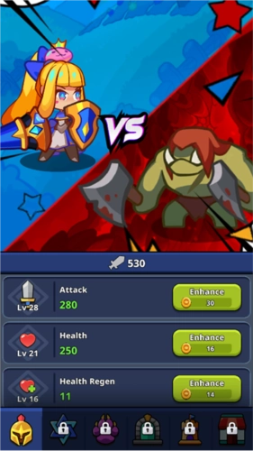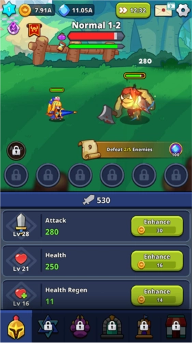 1. 第一步,在本站下载安装该游戏的最新版本;安装完毕后,打开游戏开启你的冒险征程。游戏具备自动挂机功能,也就是说无需手动操控角色,仅需点击下方绿色按钮,就能消耗金币提升角色攻击力。持续提升攻击力,你便能更轻易地战胜各类强劲的怪物。