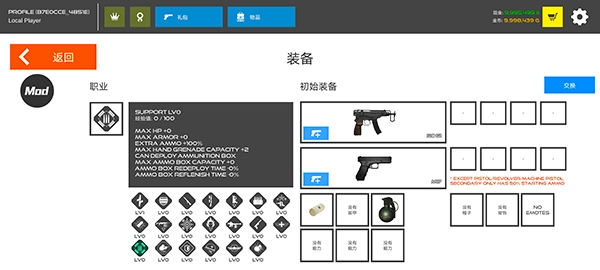 4、而“装备”栏目中,可用于替换携带各种枪械道具,或职业技能;
