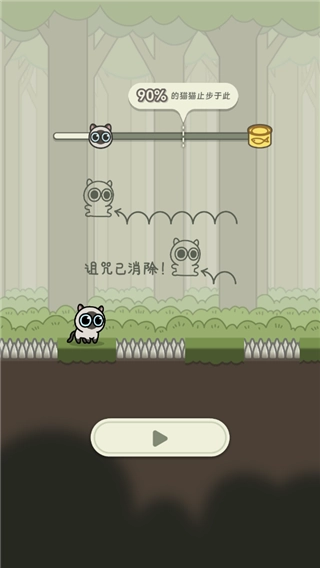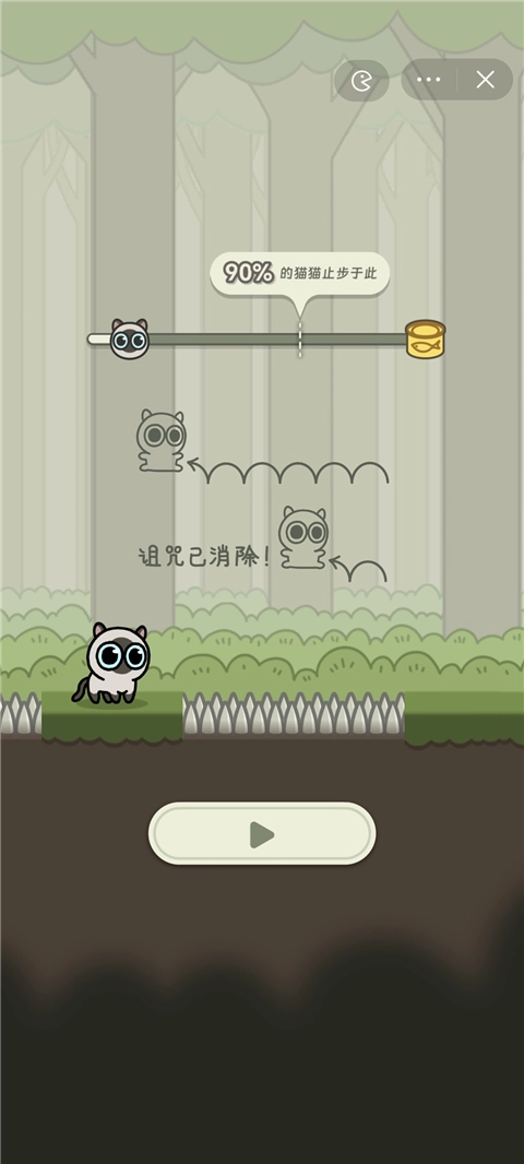 1、游戏玩法很简单,类似于跳一跳,长按蓄力让猫猫起跳。