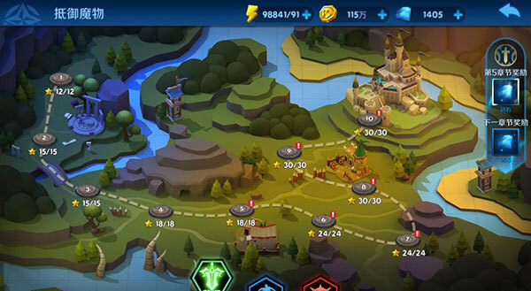 目前游戏已经开放了三十章关卡,因为每一章地图不同,每一关的怪物不同或出怪顺序不同都将会每次英雄的使用和放置都有很大的策略性,需要玩家根据地形合理配置。