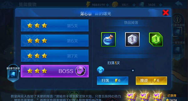 1这款游戏共设有30个章节,包含270多个难度各异的关卡。玩家需消耗体力值来发起挑战,若挑战失败不会扣除体力,只有挑战成功才会扣除。每次过关后,都有一定概率掉落符石。当成功通关每个章节,即可领取对应的章节奖励。若关卡达成满星通关,还能额外获得宝箱奖励。关卡满星后,玩家还可选择扫荡功能,从而快速获取材料。