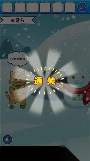 2、游戏剧情设计环环相扣,从白猫滑雪失控到被困雪山,每个关卡都围绕救援主题展开,让玩家在解谜过程中感受紧张刺激的故事氛围。