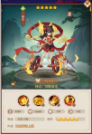 主动技能:【镇妖塔】对敌方前两排全体造成105%物理伤害,30%概率附加(嘲讽)状态,持续1回合,若自身速度大于目标,则概率提升到50%