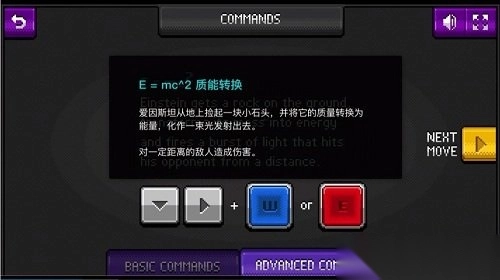 3. 这里可以看到通过按住向下键和向右键加上W或者E,可以实现特殊技能质能转换技能的发动;