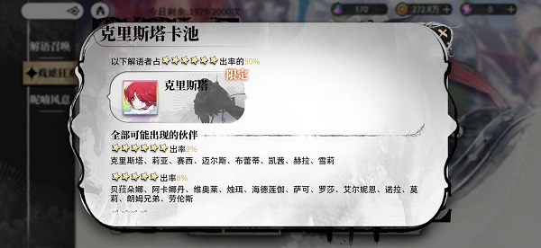 初期召唤我们可以进行获得召唤,指定六星英雄限定召唤,此种召唤指定英雄概率为50%(卡牌详情可查看),此类活动需要特殊的邂逅种子,可通过晶石获取。
