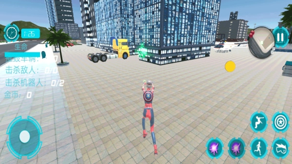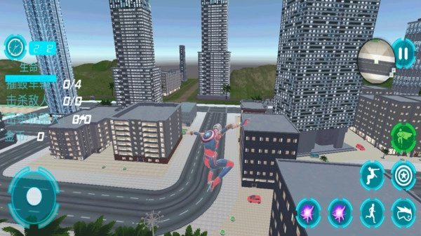 4、飞行模拟系统,你可以操作你的英雄在空中飞行,同时也是对你高超飞行技能的考验,在游戏自由探索飞行,保卫整个城市。
