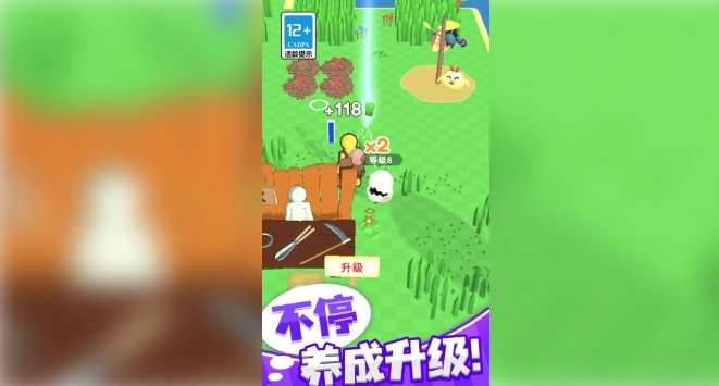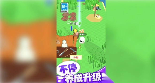 3.采用清新自然的卡通风格,色彩鲜艳,打造了一个生动有趣的割草世界。