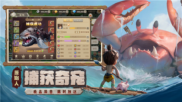 呆萌神兽红暴龙,可御可萌舞火凤,千种宠物任你选择!5星神宠可在宠物岛直接免费捕捉,海陆空任你遨游探索,快来解锁你的原始宠物小分队,成为部落英雄!