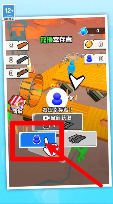 3. 当发现幸存者时,点击蓝色人形按钮,就能成功解救他们,并获取奖励资源。