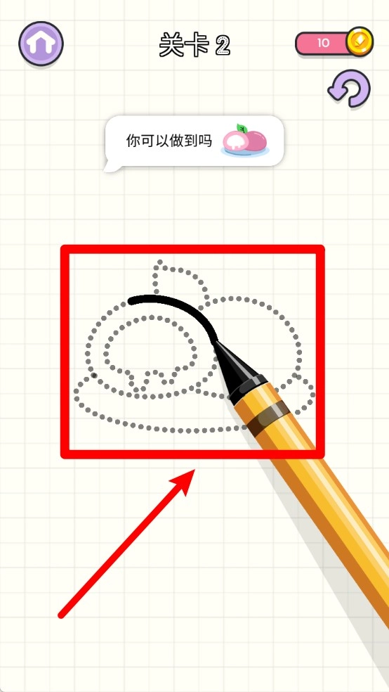2.绘制图形:依据提示将线条顺着点线描绘,手指操作精准度高,简单几步就能完成可爱图案。