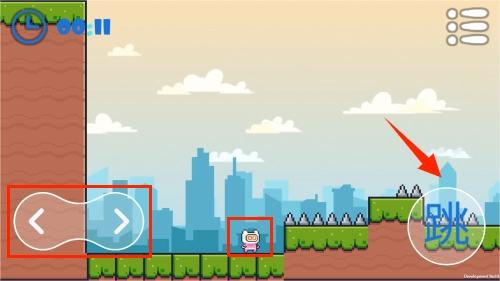 3、下方左右箭头控制人物前进和后退,点击“跳”可以进行跳跃。